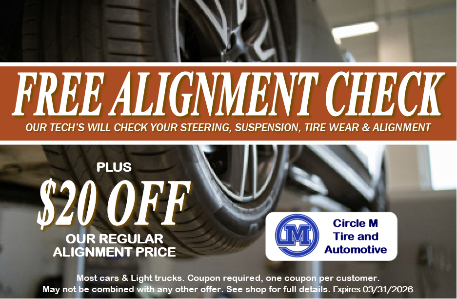 Circle M Tire & Automotive believes in bringing the best value possible to our Bakersfield community and residents, and that’s why we feature regular deals to help you get the auto repairs and fleet maintenance you need. Don’t wait on these deals, they only last for a limited time, and we rotate them often; reserve your spot today and meet the ASE-Certified auto mechanics that make it all happen.